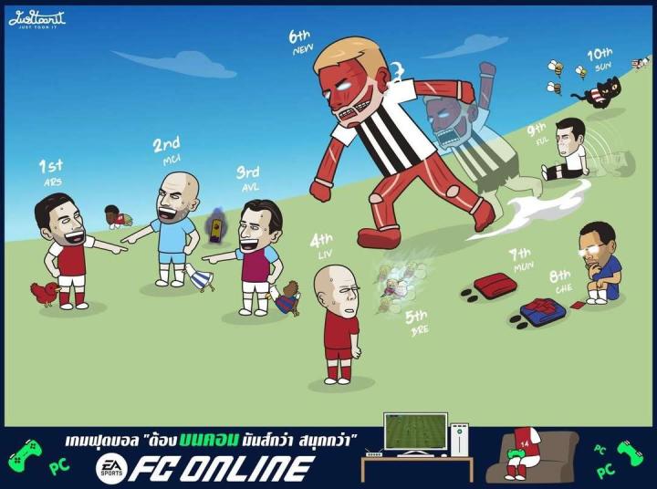 英超第二十一轮赛后总结 EPL Week 21 Cartoon by Kaew Justtoonit, Artist from Thailand.